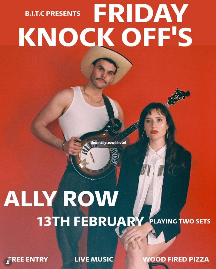 Join us for another round of Friday Knock Off's, featuring Gippsland based folk rock/ alt-country duo ALLY ROW. Blending genres with their toe tapping sound and heartfelt lyricism. The multi-instrumentalists incorporate electric banjo, guitar, keys, harmonica, stomp box and tambourine. Creating an unexpectedly full and upbeat live show.
